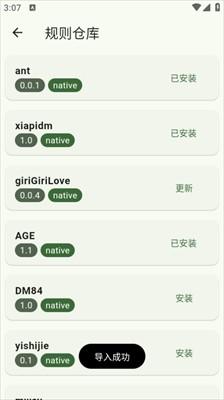6、在此点击从规则仓库导入,就有内容啦点击一个安装!下面也会显示导入成功啦!