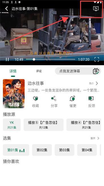 4、最后在播放界面中选择“tv”标志即可投屏哦