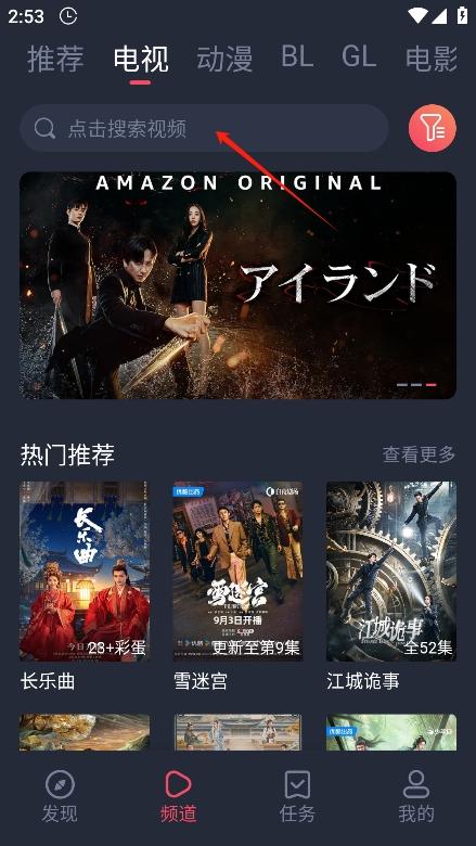 3、或者选择电视的分类频道,可以在频道中进行电视剧发现。