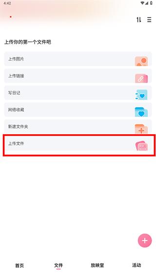 2、点击列表最后一个即可上传文件,别忘记授予软件手机的存储权限