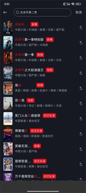 4. 快速搜索功能:用户只需输入关键字即可快速搜索自己喜欢的电影和电视节目,轻松检索自己想要的作品。
