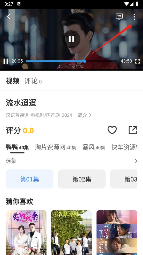 1、选择想看的影视剧集点开,点击右上角的三个点标志。