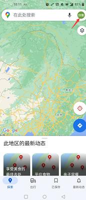 1、大家在下载安装了谷歌地图后,需要删除记录,进入到主页面选择右上角的自己的账号头像点进去。