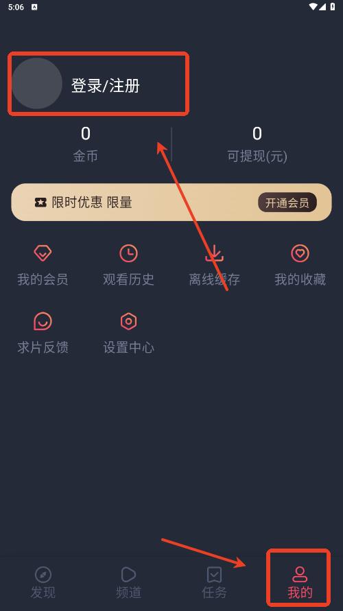 第一步:打开app,点击【我的】,点击【登录/注册】。