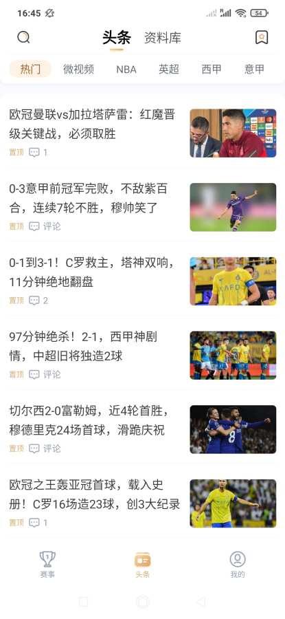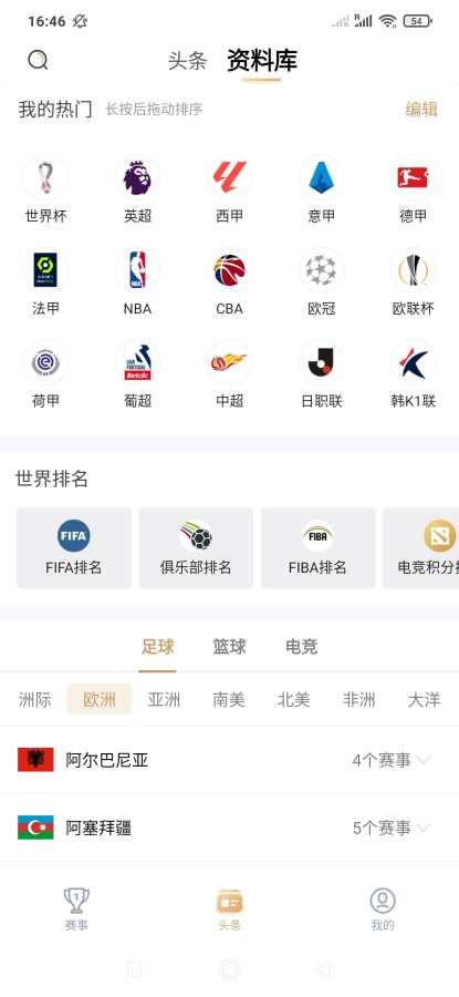 2. 头条资讯:提供主要赛事的最新消息和相关报道。
