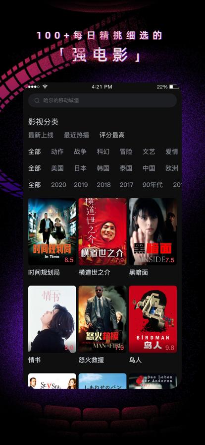 搜索功能:用户可以通过搜索关键词找到自己想看的电影作品。