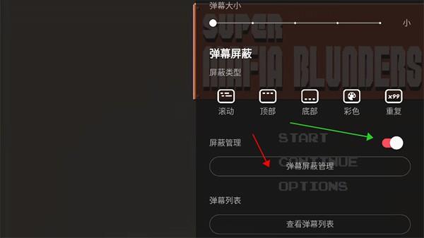 2、在右侧弹出的弹幕设置页面中,开启弹幕屏幕管理。
