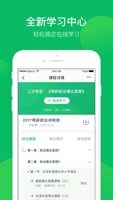 2、考研:课程涵盖考研政治、英语一、英语二、数学...精心的服务,精良的课程,精勤的老师,2018考研,陪你一起成功;