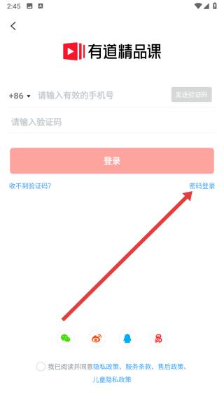 3、在进入到登录页面后,可以点击密码登录按钮,切换登录的方式;