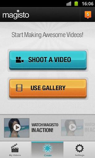 7、从您的Gallery上传视频和照片,或使用Magisto作为智能视频摄像机;