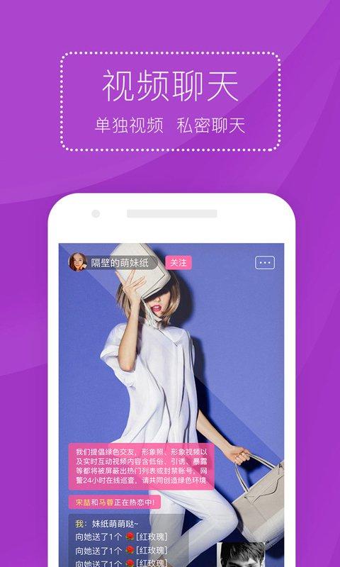 视频交友直播社区! 汇聚主播、校花校草、萌妹子、小鲜肉、网红、草根偶像、奇葩组合,与你真实面对面聊天交友互动!涵盖众多会唱歌、会喊麦、会跳舞、会聊天的俊男靓女,全天24小时精彩直播不间断。