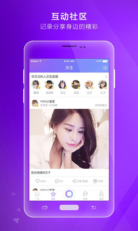微拍直播是一款高颜值直播集中营,各种帅哥美女云集,各种才艺展示,无论你想看什么类型的,这里全部都有。它集网上K歌、亲友聚会、视频交友等多种功能为一体,无论是琴棋书画、户外、运动、游戏,都能找到,陪你度过欢乐的时光。你可以与主播一起聊天互动,与你喜爱的主播一起嗨歌,实现你的小愿望,还可以为心仪的主播刷赞送礼物,趣味多多,各种精彩有趣的直播互动等你来体验。系统会根据您的兴趣为您推荐相似的主播;可以给直播发送私人的聊天信息,与主播在线进行聊天;也可以定位自己所在的城市,快速的发现附近的人,让你们在聊天过程中不断的拉近彼此的距离,在聊天的过程中擦出爱情的火花!还在等什么?快来下载体验吧!