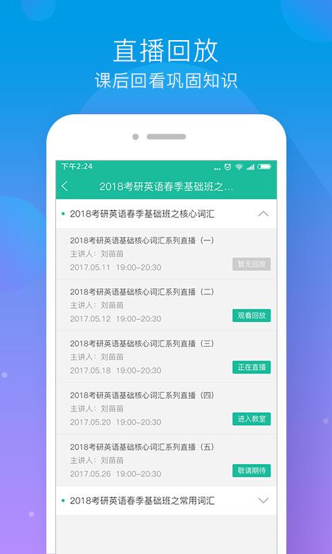 3、直播回放:每节直播课都有回放功能,学员灵活自主安排学习时间。