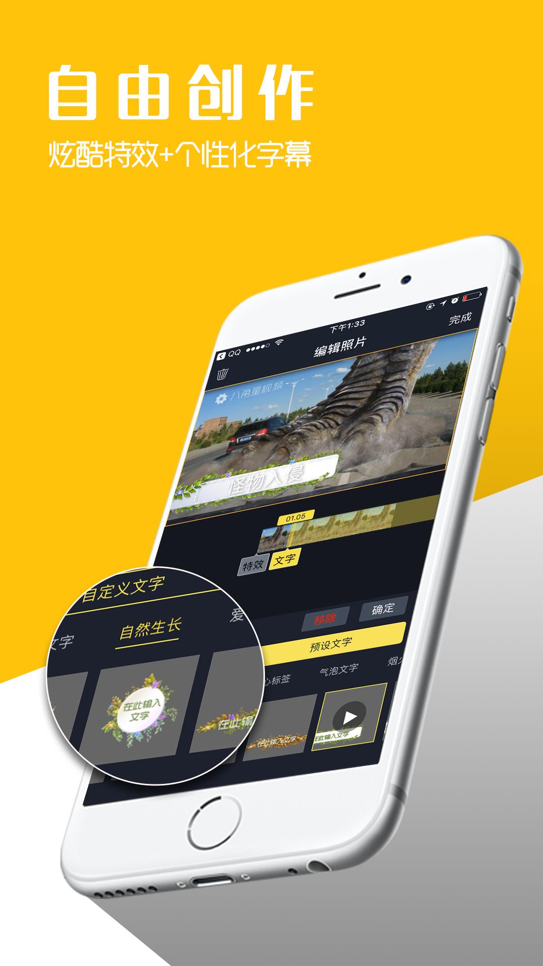 是不是一直都感觉别人用手机拍的视频都倍儿棒,你却拍不出那种效果?你以为真是别人的手机像素好或者技术高?下载《八角星视频制作》试一下吧,影视纪视频,你也可以轻松拍出。