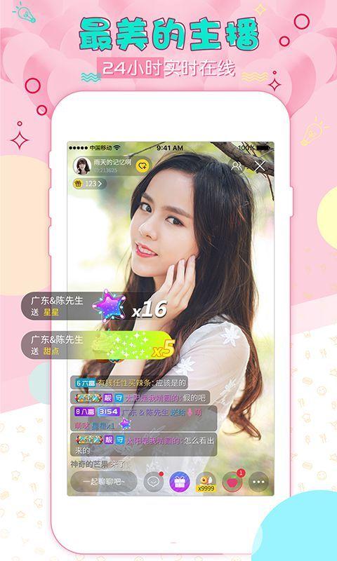 最新最炫酷的真人视频直播APP。这里有全网最高颜值的主播,等待你与TA们视频互动聊天;女神、萌妹、大叔、小鲜肉、总有一款是你的菜。同时,你也可以像主播们一样进行直播,用自己独特的亮点和有趣的技能吸引更多的人聚集在这里为你加油助威,点赞打赏;还可以分享到朋友圈,微博,微信邀请好友观看。尽情挥洒你的热情,绽放你的光芒。