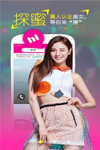 1、万人在线:蜜聊现场,一键say hello,海量帅哥美女等你聊:萝莉御姐美娇娘,型男靓仔豪大叔。比漂流瓶更直接,比陌陌更简单,比探探更好玩。