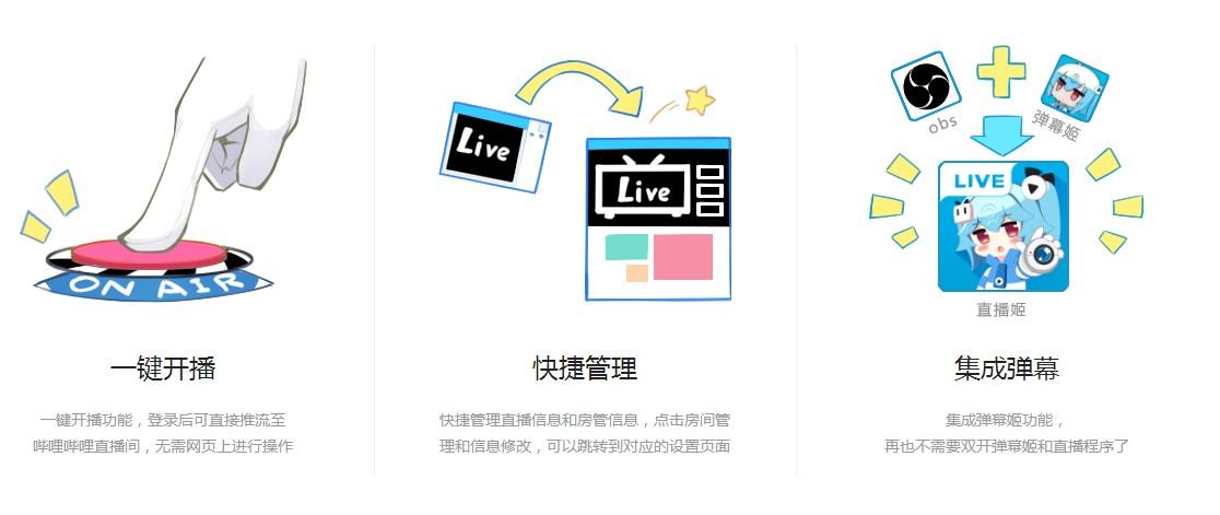 一键开播功能,登录后可直接推流至哔哩哔哩直播间,无需网页上进行操作。
