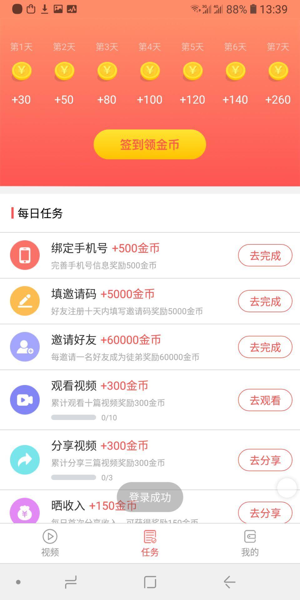 4、除了平常的看视频看新闻赚钱,还可以通过签到、晒收入来获得佣金哦!