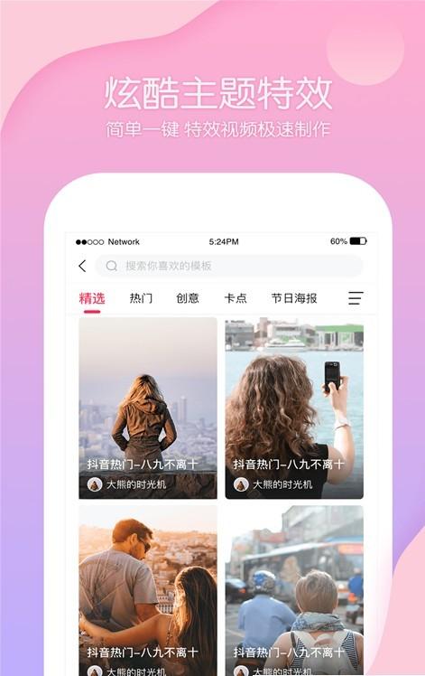 一款视频剪辑视频制作视频美化的专业软件,专注于视频剪辑与特效制作。化繁为简,将复杂的视频编辑简化为一个个精美的特效模版,简单一键即可制作。