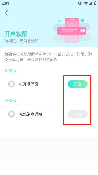 2、我们需要开启悬浮窗和系统消息提醒,点击“开启”后会自动跳转至相应的设置界面。