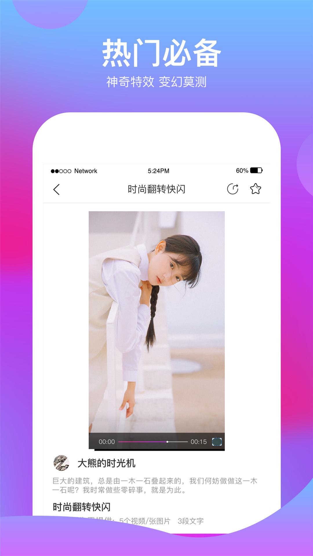 流行效果每日更新,只需花几秒钟的时间即可生成一个神奇视频,或酷炫、或唯美、或感动、或励志,AE效果化繁为简,海量模版一键套用,创作视频从未如此简单!