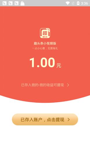 趣头条(小视频)中每天都能提,只要有0.3元就可以立即体现,无其他要求
