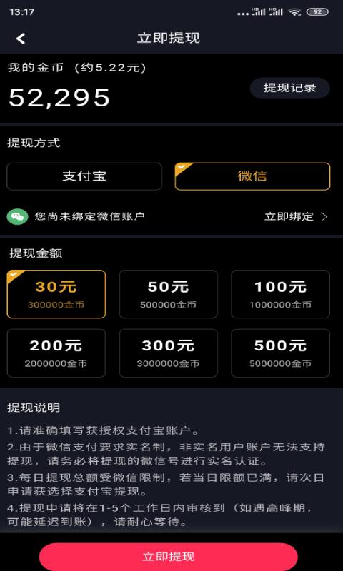 4、在爱刷短视频上看视频,每一秒都能挣钱,金币奖励领不完,金币奖励可以兑换成现金提现到微信。