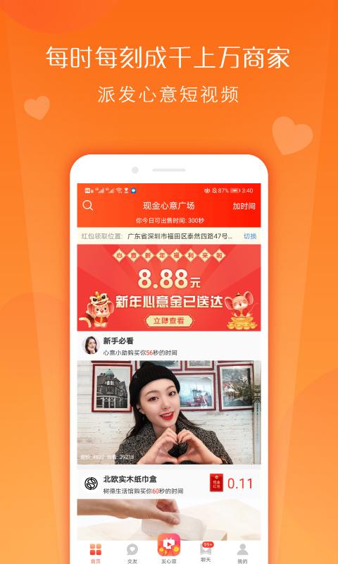心意红包美好一天从心意开始,每时每刻成干上万商家,派发心意短视频,私域社群·聊天互动,