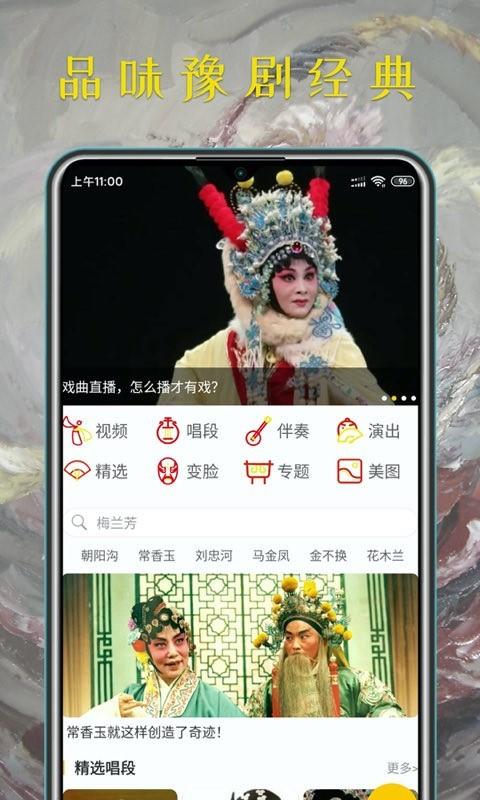 3、精彩戏曲视频、精选伴奏唱词、精美剧照、戏曲换装变脸游戏等丰富的豫剧戏曲资源,是您休闲娱乐的好伴侣。