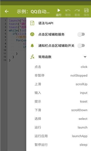 1、Auto.js支持简单的代码补全。您也可以把他当作简便的JavaScript IDE使用。