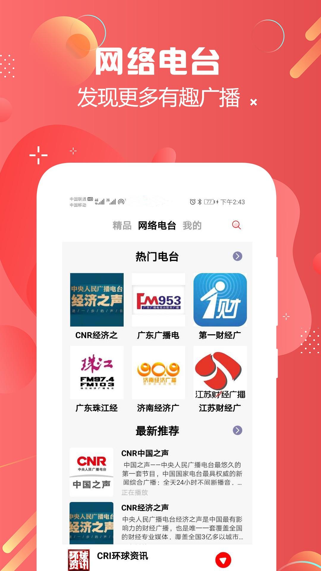 愉快的广播节目都在这里,以后不需要用收音机来听了,你可以随时随地聆听他们的声音。