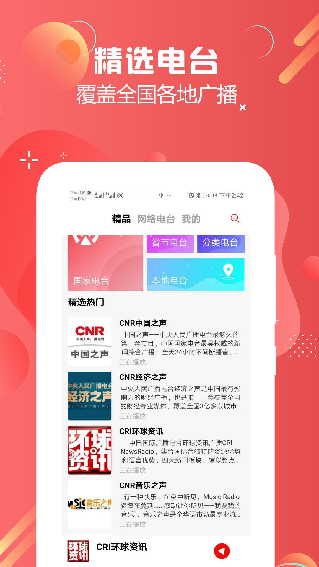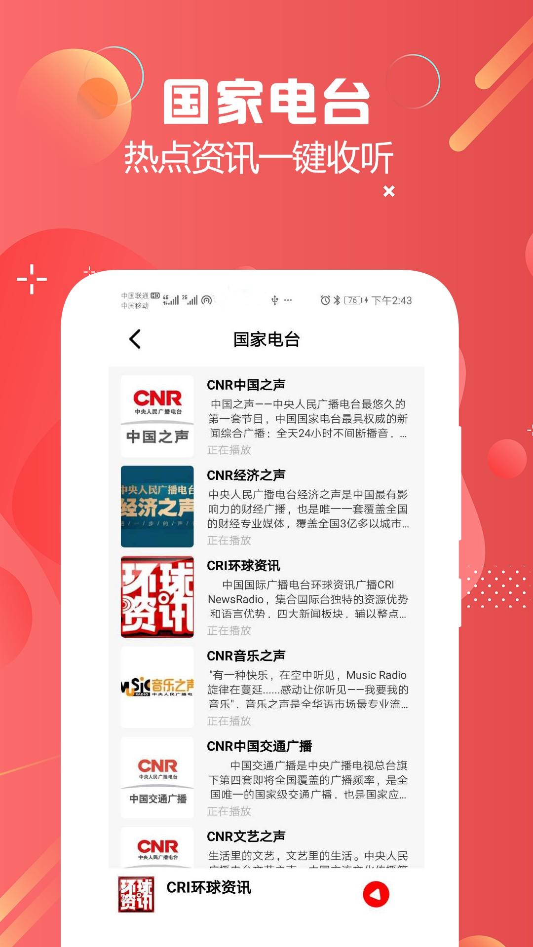 覆盖全国各地的广播节目,内容精彩,经电台正式授权,24小时播出。