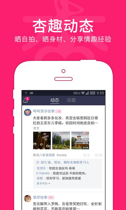 杏趣直播app下载安卓版收集多样精彩影视的手机播放工具,用户可以从这里得到不同的精彩资源,也可以使用这款软件成为全新的播放器。这里有海量的美女直播内容,各种类型的精彩你都能在这里观看看。感兴趣的小伙伴快来下载体验吧!