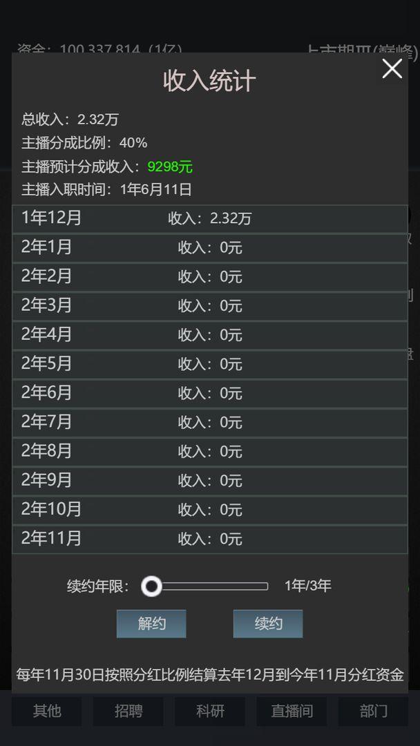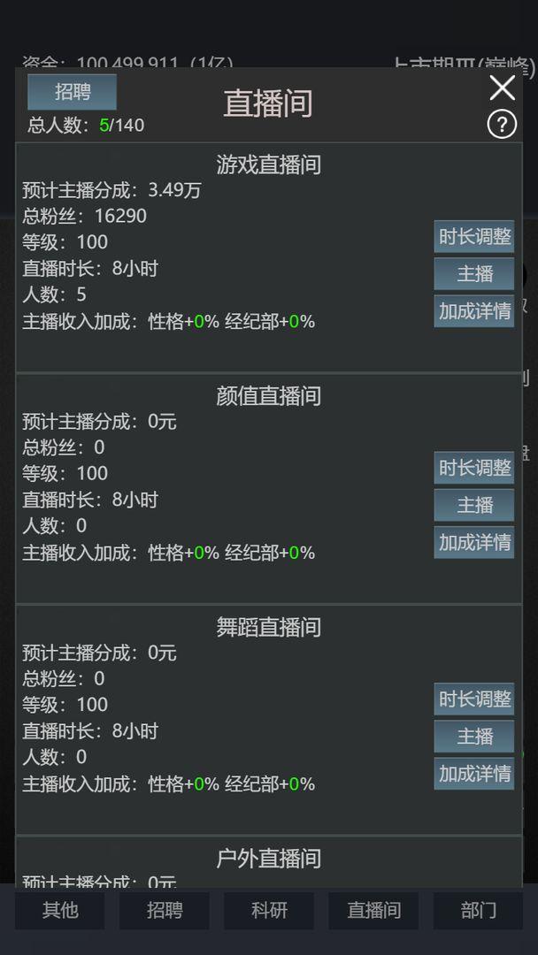 在游戏中,你将扮演一名公司老板,并签下一名高质量的主播,直播内容包括游戏、户外、餐饮、娱乐、科技等多种直播类型。