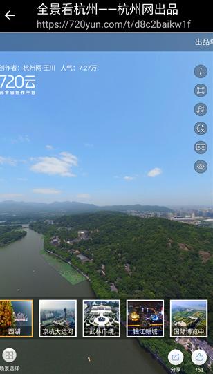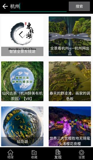 3、点击右上角搜索,比如搜索杭州,就可以看到有全景看杭州,点击进入即可;