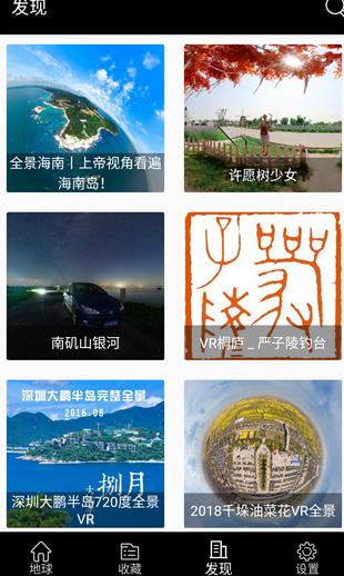 2、点击发现,进入发现页面,就可以看到这里有众多地域的VR全景;