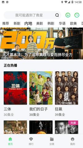 海量高清影视资源:拥有丰富的高清影视资源,包括电影、电视剧和综艺节目等。在线播放、下载和离线收看,用户可以在线观看影片,也可以下载到本地离线收看。根据影片的类型、地区、年份等进行分类,用户可以轻松找到自己想看的影片。