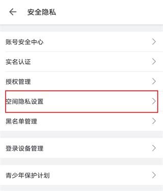 3、接着点击【空间隐私设置】。