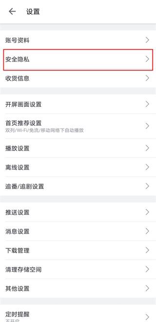 2、然后点击【安全隐私】。
