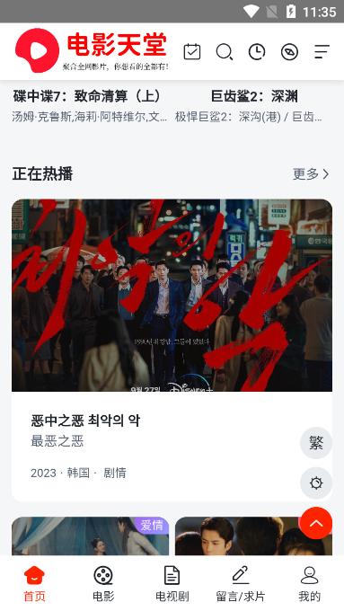 电影天堂免费观看是一款备受影迷们热捧的手机影院软件!电影天堂免费观看app不仅可以为用户提供各种热门电影资源,还有最新上映的院线电影,同时还配备了超清画质和中英文字幕等功能,让用户可以享受更为高品质的观影体验;如果你是一位影迷,那么电影天堂app绝对是你不可错过的观影神器。