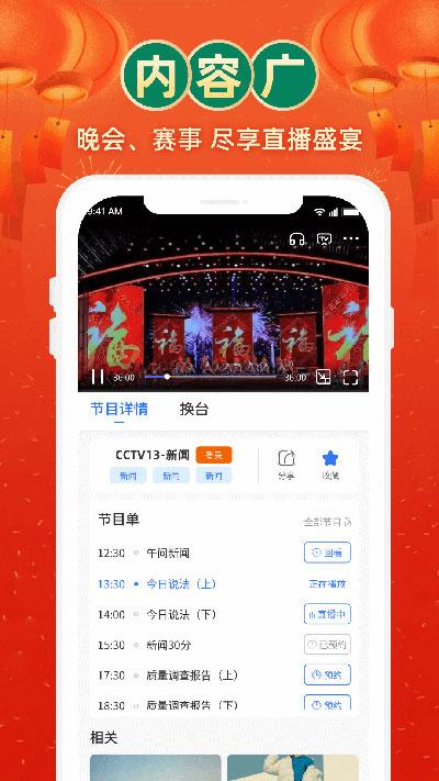 1.实时直播:电视家提供了各大电视台的实时直播节目,用户可以随时随地观看新闻、体育、电影、综艺等各类内容。