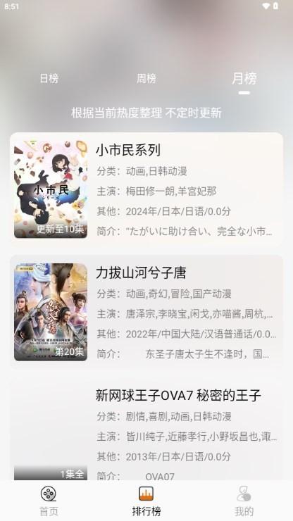 4.收集各种已完成的动漫,每个人都可以一口气欣赏,从头到尾,各种高质量的动漫资源,一步一个脚印看够了,每天更新。