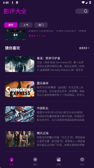 1、电影推荐 在线推荐各种电影作品,用户可以看到推荐的电影作品的详细内容。