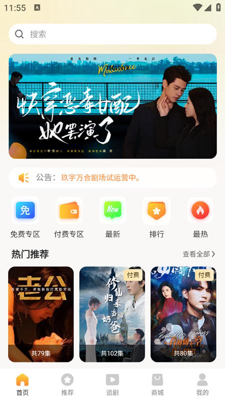 玖宇万合剧场是一款全新的免费追剧播放软件,拥有免费影视专区和会员专区,随时让用户及时获取各种热门影视剧,可以自由在线看剧观影,还提供智能影视追剧模式的加入,轻松在线选择感兴趣的影视来看,享受优秀的追剧服务和乐趣,还允许用户自由选择相应的影视分类,自由呈现各种高质量的电影和电视剧资源,自由免费播放热门且精彩的影视剧集,能完全满足用户的所有追剧需求,有兴趣的用户欢迎来本站下载软件。