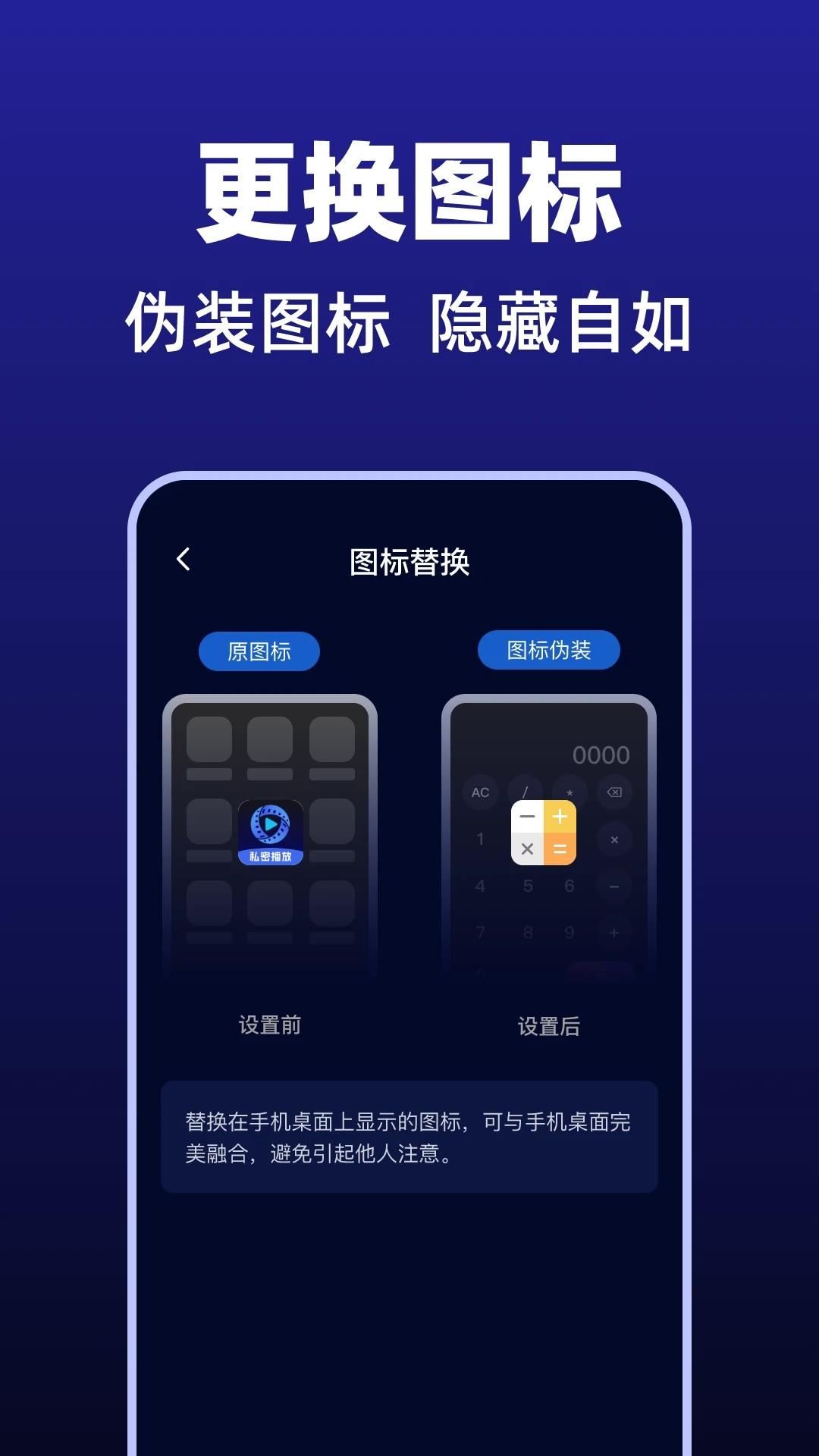 具有丰富多样的伪装图标,允许用户自由选择,使桌面上的应用程序图标更加精致。