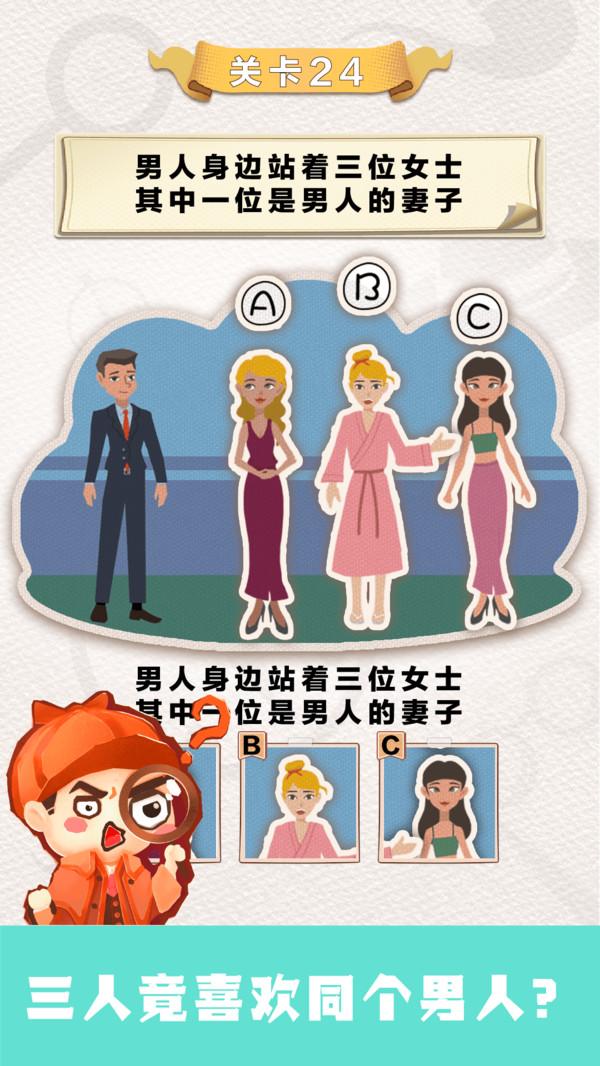 聪明大侦探游戏中玩家将成为一名侦探,您需要根据关卡的问题的内容在场景中找出正确的答案,游戏中的谜题都不难的,但是脑洞很大,挑战成功之后总会给玩家一种原来如此的感觉,每个关卡都不会让您失望的;