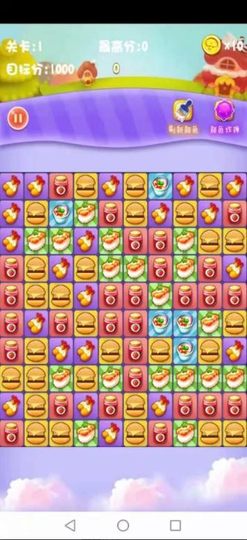 经典模式- 消除相邻的2个或者2个以上的美食小块得分,达到关卡的分数便过关!