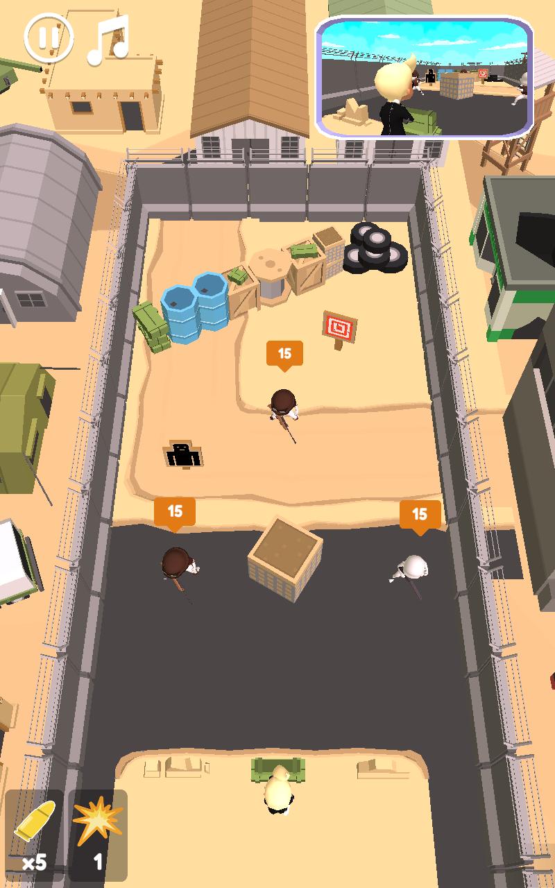 弹跳杀手手游是一款休闲益智的闯关小游戏,游戏内置了有上十种不同种类的武器供玩家选择,玩家需要在不同的关卡不同的场合使用相应的武器对敌人进行偷袭,将子弹在墙壁上进行弹射击败敌人解救人质。