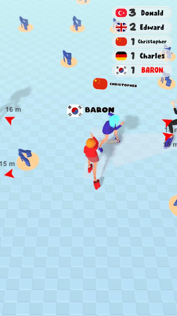 高跟鞋大作战安卓版是一款竞技类游戏,在同一地图类有很多的道具高跟鞋,穿上累计叠加会越来越多,看到比你矮的对手可以去击败他并将她推入水中,女人不狠地位不稳,去击败你所有的对手吧!