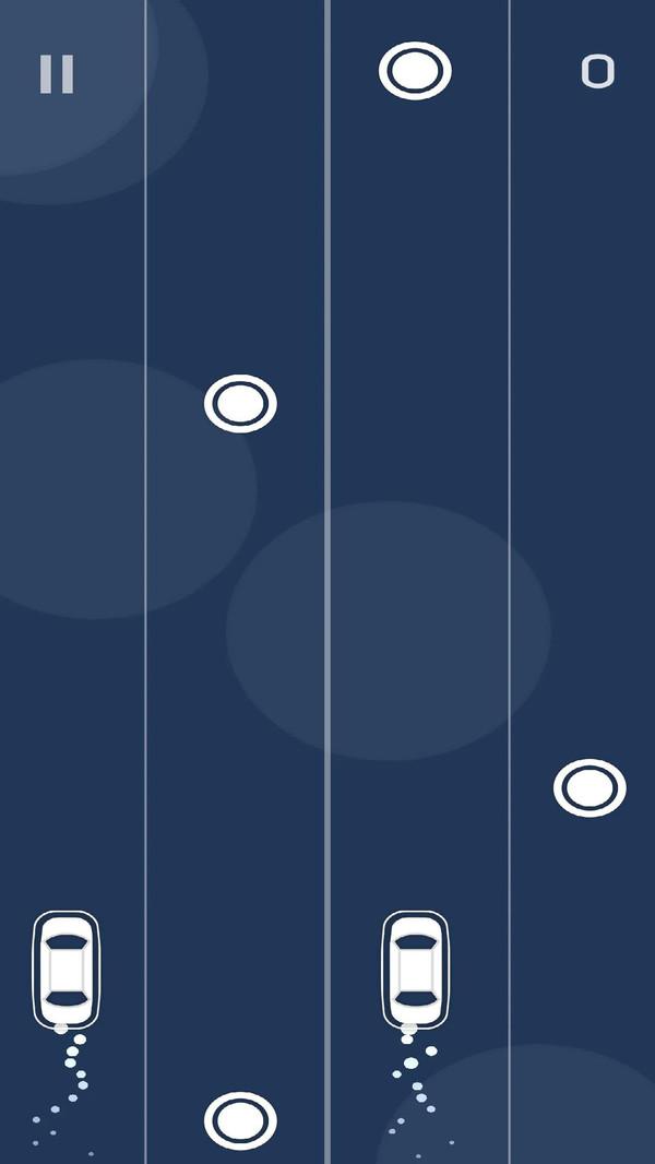 两车极限是一款非常简约清新的反应休闲类手机游戏,以前都是一个车来进行躲避这次加大了难度,虽然赛道一边只有两个道,但是有两辆车,双倍的操作,双倍的快感。嘻嘻准备好了吗?游戏操作非常的简单点击屏幕就可以让小车变道。